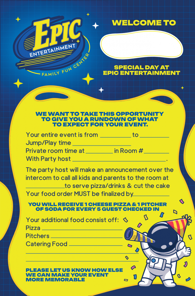 Perfect for birthday parties, group events, and special celebrations at Epic Entertainment! Just print it out, fill in the details, and you’re ready to jump into the fun!